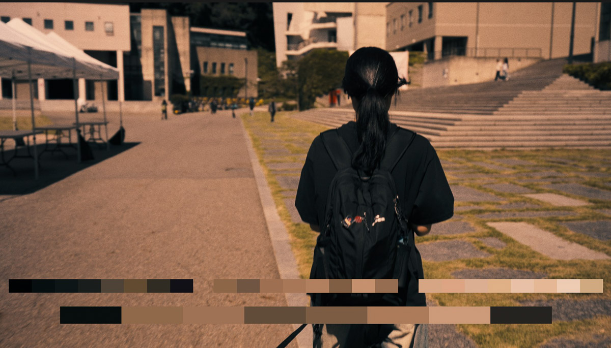 학교가 전반적으로 어두운 계조가 있고 특히 햇빛으로 반사가 심해서 인물과 배경에 대한 분리가 필요하였다. 어두운 느낌을 내고 싶었기 때문에 무색 계열을 희망하여 팀원 분들께 부탁해서 검은색으로 최종 결론났다.