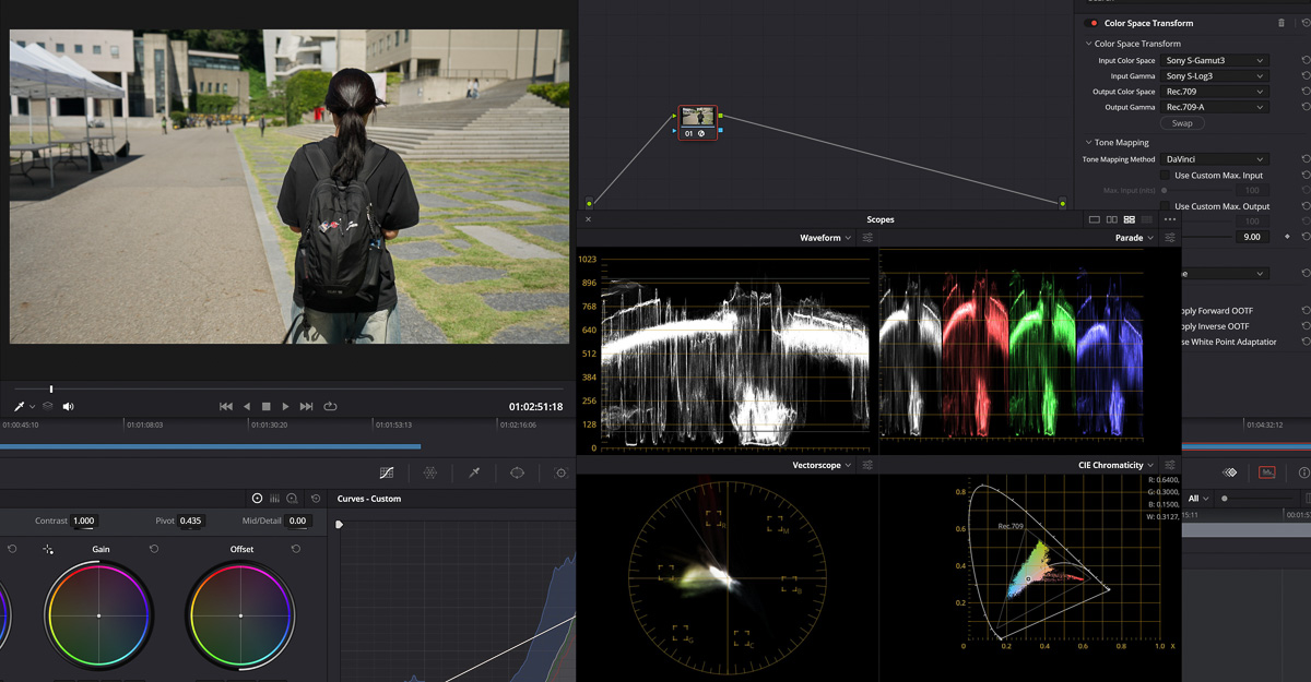 기본 SLOG-3 로 촬영 후 간단하게 컬러스페이스를 통해 Rec-709로 변환 하였다. 다행히 노출 부분에서는 문제 없이 잘 촬영 한 것 같다. 하지만 그린이 좀 과하게 분포 되어 있는게 아쉬움